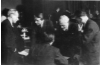 2. ernannter Landtag, Arbeitsminister Erich Arp. SPD, Staatssekretär im Innenministerium Lauritz Lauritzen, stellvertretender Ministerpräsident Hermann Lüdemann, SPD, Landtagspräsident Karl Eduard Heinrich Ratz, SPD stehend in einer Besprechung (von links nach rechts)