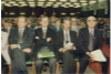 Ministerpräsident Björn Engholm besucht die NORLA (Norddeutsche Landwirtschaftsausstellung) in Rendsburg, Besucher einer Veranstaltung in einem Saal, Landwirtschaftsminister Hans Wiesen, Bundesumweltminister Klaus Töpfer, Ministerpräsident Björn Engholm und Bauernverbandspräsident Karl Eigen (erste Reihe von links nach rechts)