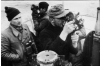 Im Vordergrund rechts Obersteuermann Thieme bei der Positionsbestimmung mit Sextant und links I. Wachoffizier (I. WO) Leutnant zur See Rudolf Arendt [lt. Identifizierung durch Gerd Enders] auf dem deutschen U-Boot "U 18" der 30. U-Flottille im Schwarzen Meer