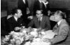 Gespräche während der Feierlichkeiten anlässlich des Stapellaufs des Frachters "Werratal" bei der Werft AG Weser in Bremen